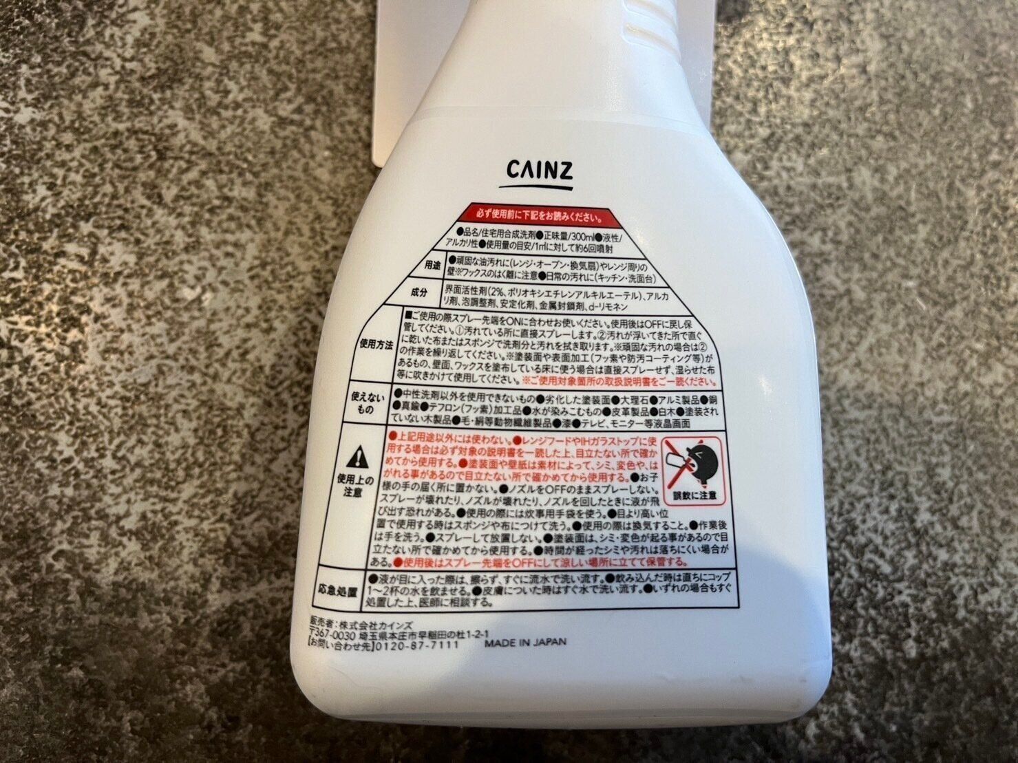 カインズの洗剤は低価格なのにプロの品質。おそうじ初心者の私でもテクニックいらずできれいにおそうじできるので重宝しています!