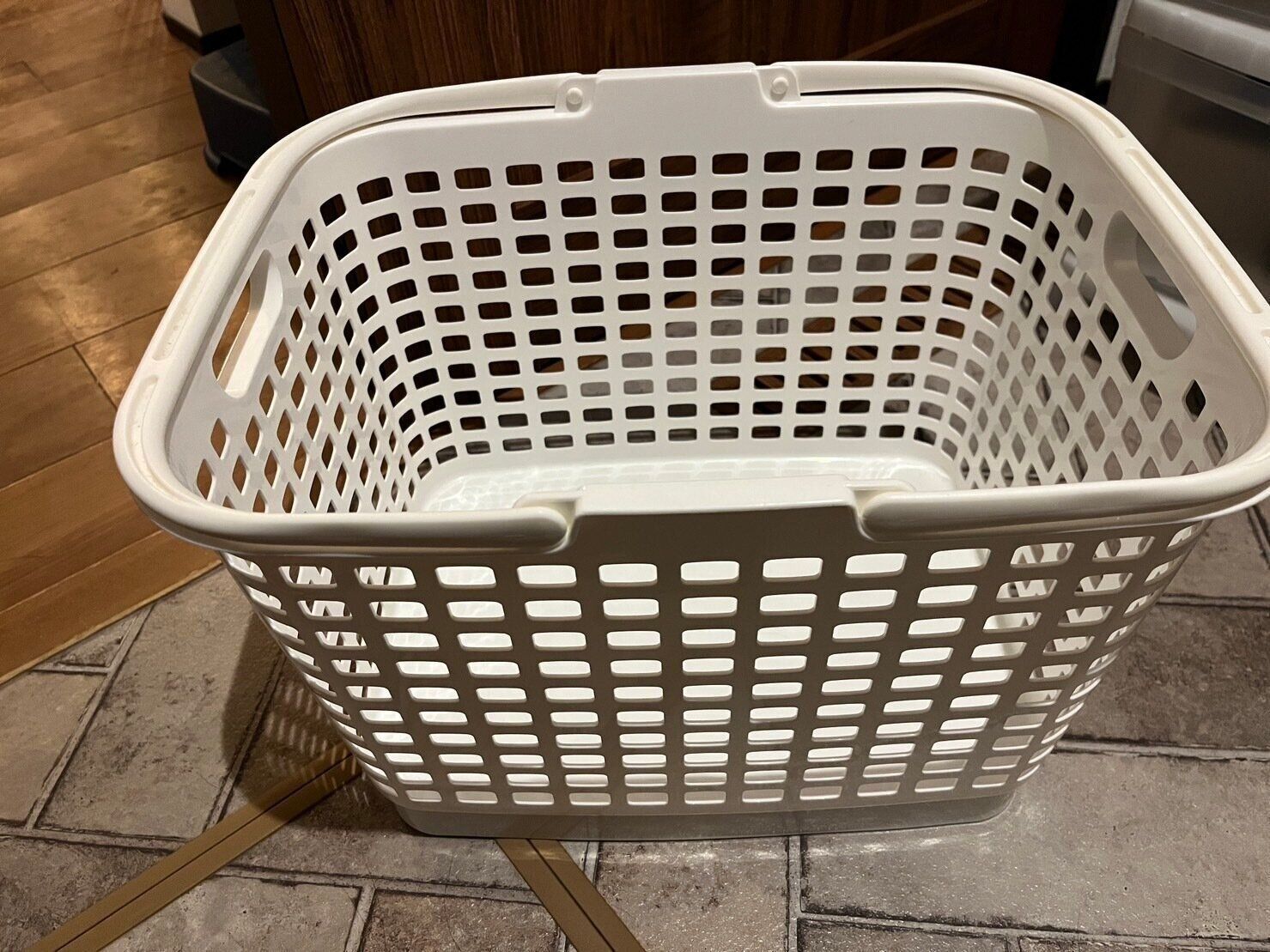 一見普通の洗濯かごのようですが、こちらのすごいところはかごの裏にスタンドが付いていて、広げると高さが約25.5cmアップします。