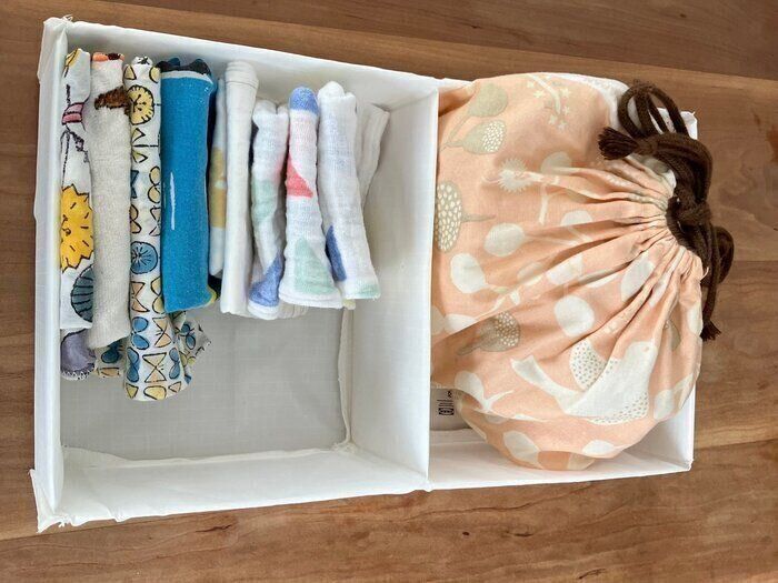 小物を分けて収納するのに便利で、こまごまとしたハンカチや靴下などを収納するのに使用しています。STUKを使用してからピシッと立ててハンカチや靴下などを収納することができるようになってとても気持ちがいいです。ハンカチや靴下は立てて収納すると見やすく取り出しやすいです。
