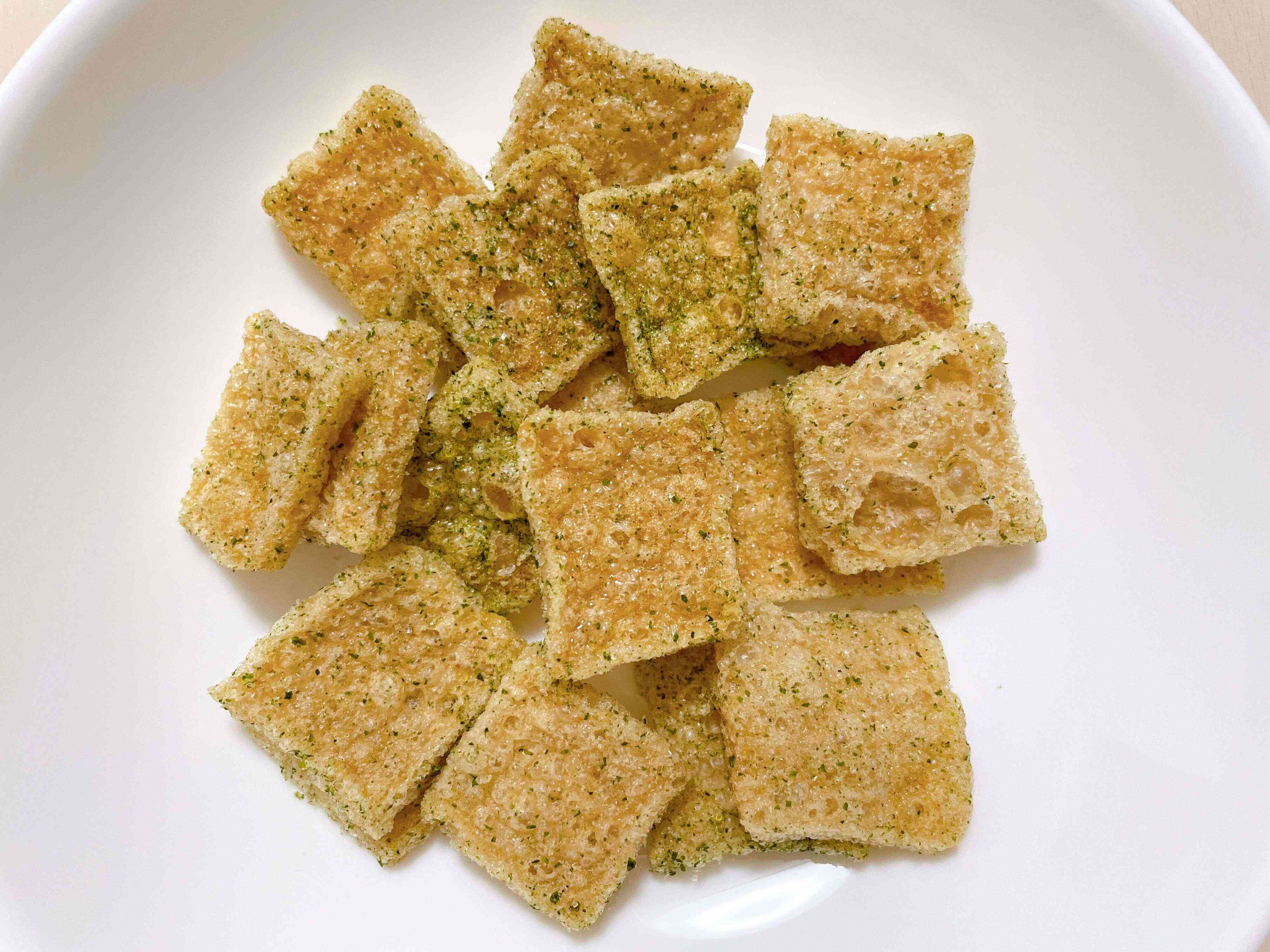 食べるとパリパリして、ここまで軽い食感の食べ物が他に思い付かないです。
