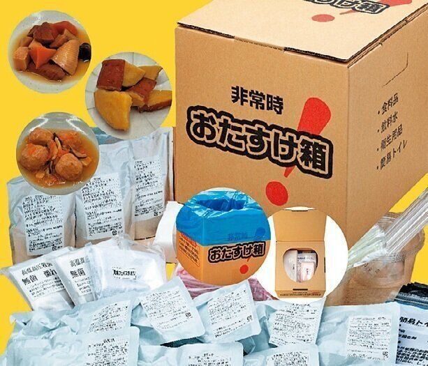東日本大震災の教訓から学び、非常時に本当に必要な物をセットに。1人用3日分の食料品(賞味期限5年)や飲料水、タオルなどの衛生用品などが入り、外箱は簡易トイレになる仕様。