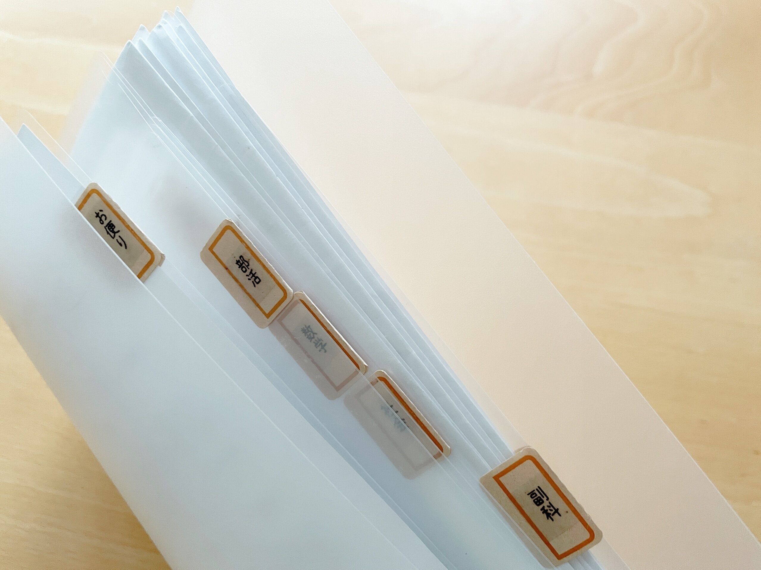 最近のプリントは基本A4サイズなのでA4サイズのプリントをそのまま折らずに収納できるものが良いです。ポケット型なので通常のファイルよりプリントの出し入れが断然楽にできるのもうちの子達に合っていた点でした。インデックスをつけて子ども達が保管しているプリントを一緒に見ながら5つのポケットを裏表で10分類に仕分けました(お便り・部活・国語・数学・理科・社会・英語・副科・テスト・保管)。