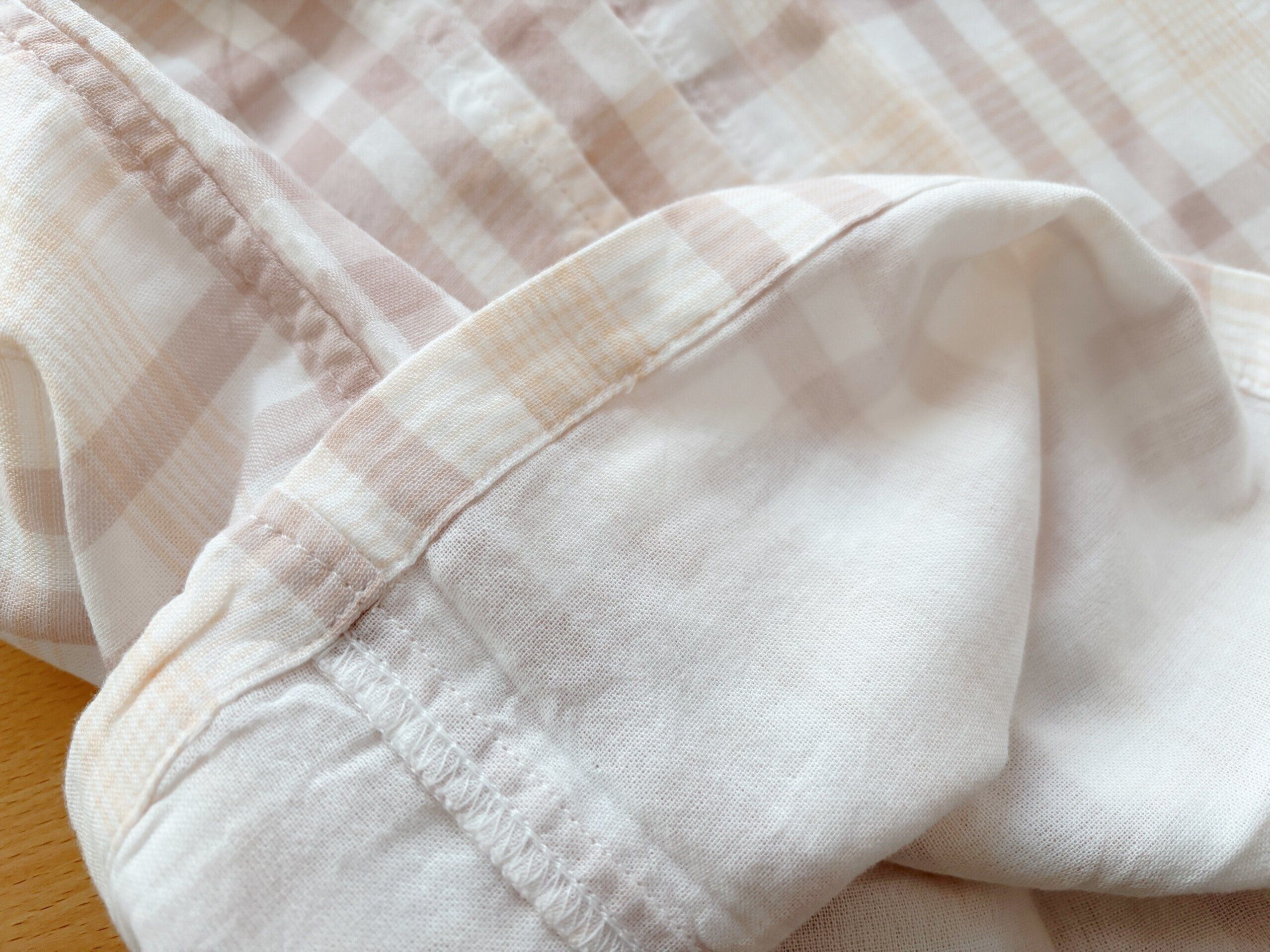 ガーゼ素材は層の中に空気の保つことができ、暑いときは汗や熱は放出し、寒いときは空気の層の中に暖かさを保ってくれる優れもの。その柔らかいガーゼを二重にすることで、肌にとっても優しい空気と温度を保ってくれます。