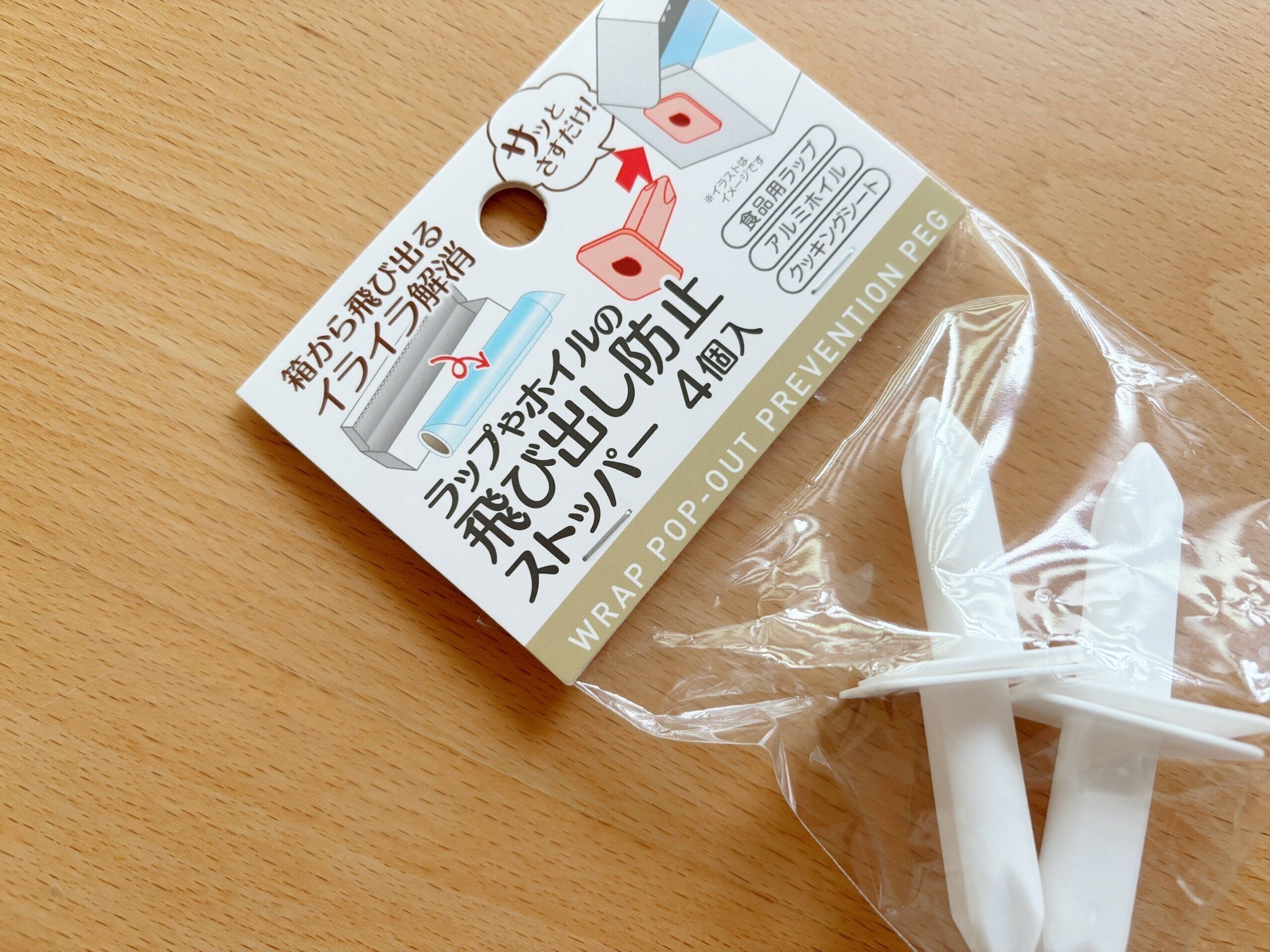 今回は、プチストレスを解消してくれたという「ラップやホイルの飛び出し防止ストッパー(4個入り)」をご紹介します。