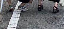 「大洗の有名なお寿司屋さんに3人で並んでいたところ、写真右側から野良猫が現れ、道路を横切って左側の車の下に入っていきました。私も、写真に写っている友人も猫がとても好きだったので、思わず車の下をのぞき込んだのがこの瞬間です」