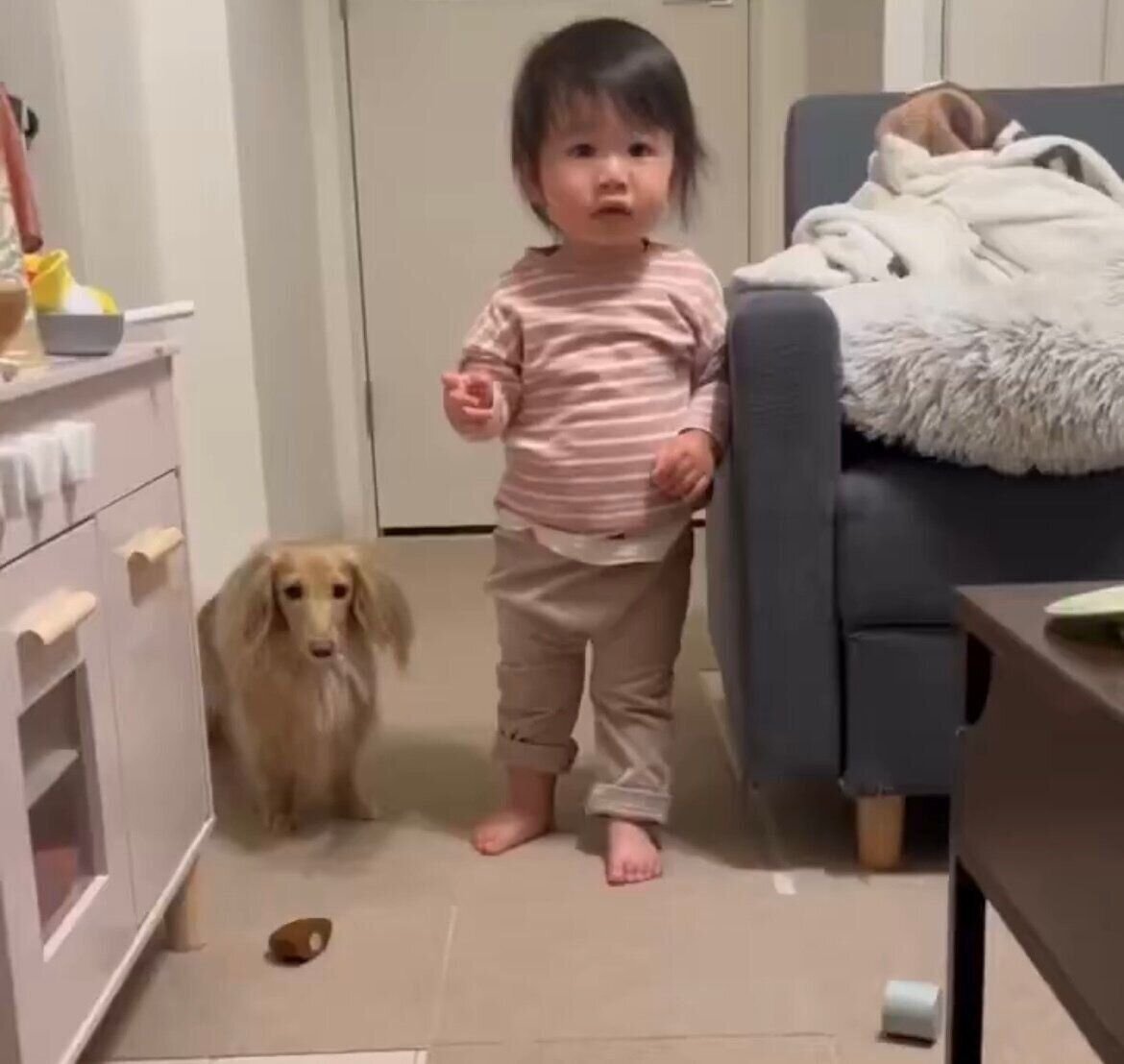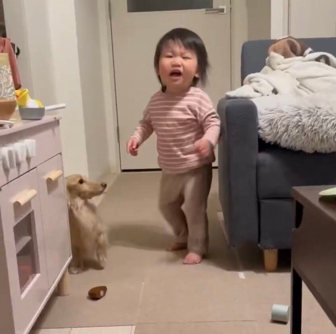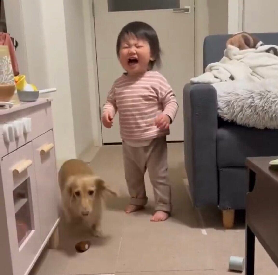 娘の駄々っ子モードに素早く反応する愛犬