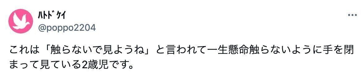 ハトドケイさん(@poppo2204)がXに投稿したのは、2歳の息子くんと買い物中、「(商品は)触らないで見ようね」と約束したときのこと。触らないように両手を一生懸命隠す息子くんに、23万人が「尊すぎる」「健気で愛おしい」と感動しました。