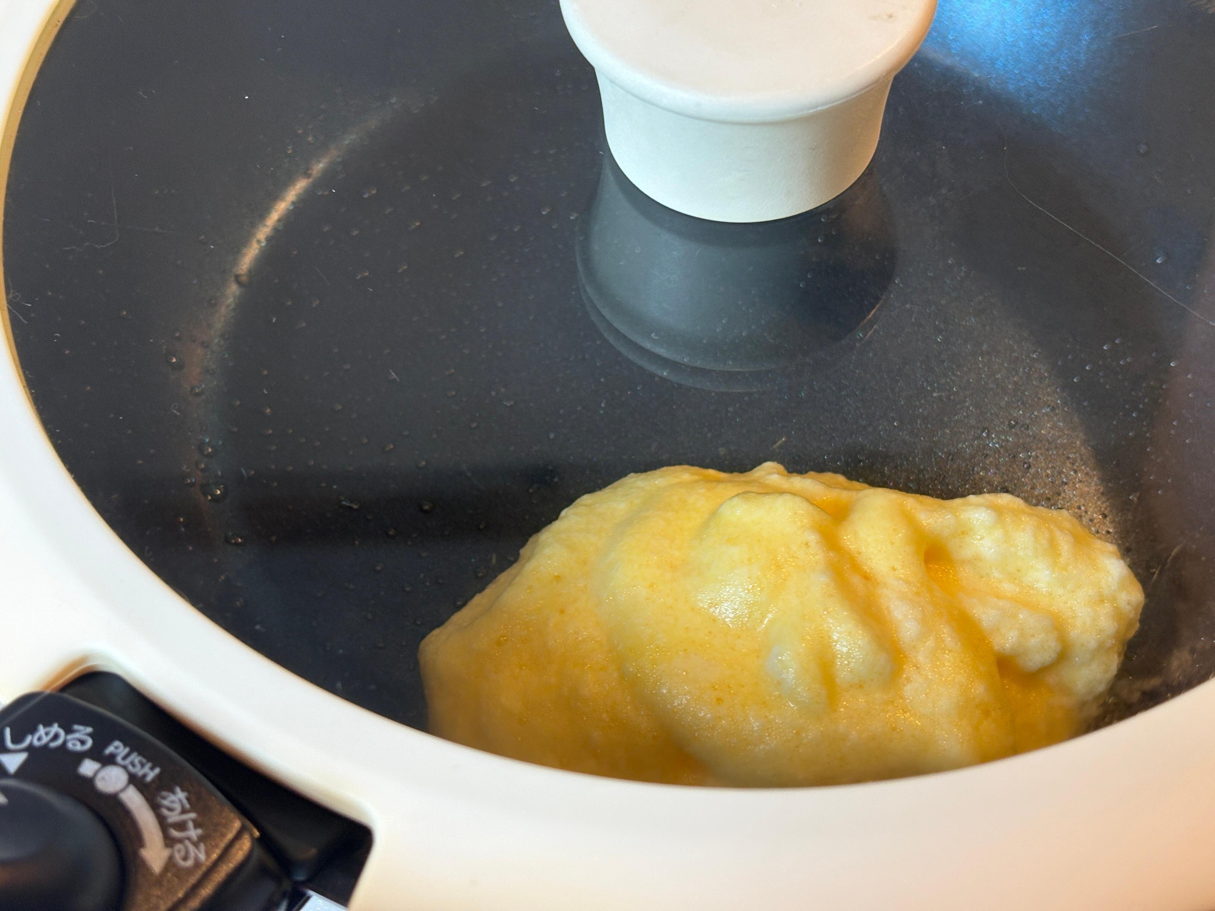 続いて、ふわふわエッグメーカーを使ってオムレツを作っていきます。