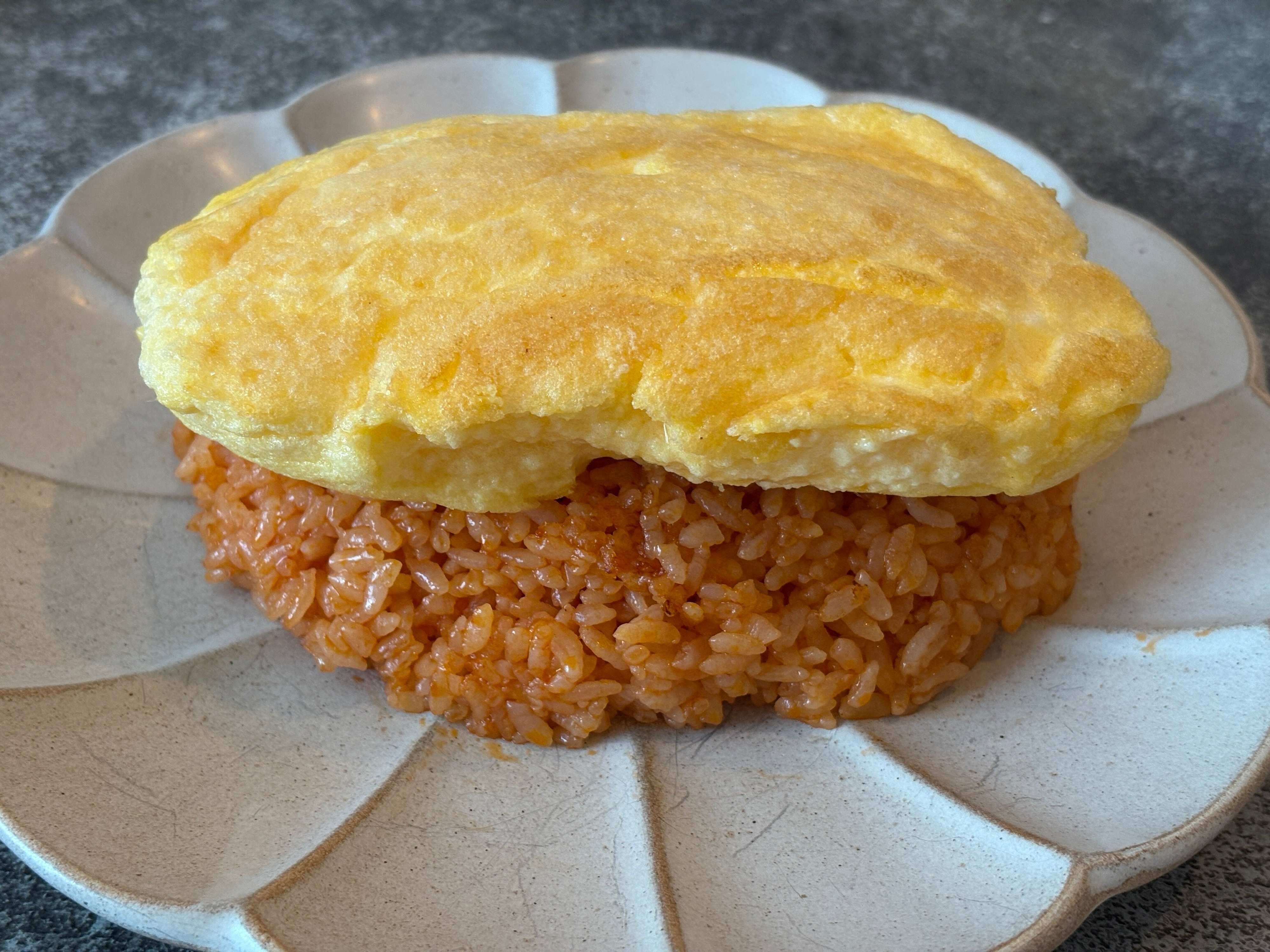 ふわふわエッグメーカーを使って作ったオムレツは、卵1個なのにとってもボリューミー!まるでスフレのようなふわしゅわ食感です。時間が経つと少ししぼんでしまうのですが、ふわふわの食感はキープされたまま。
