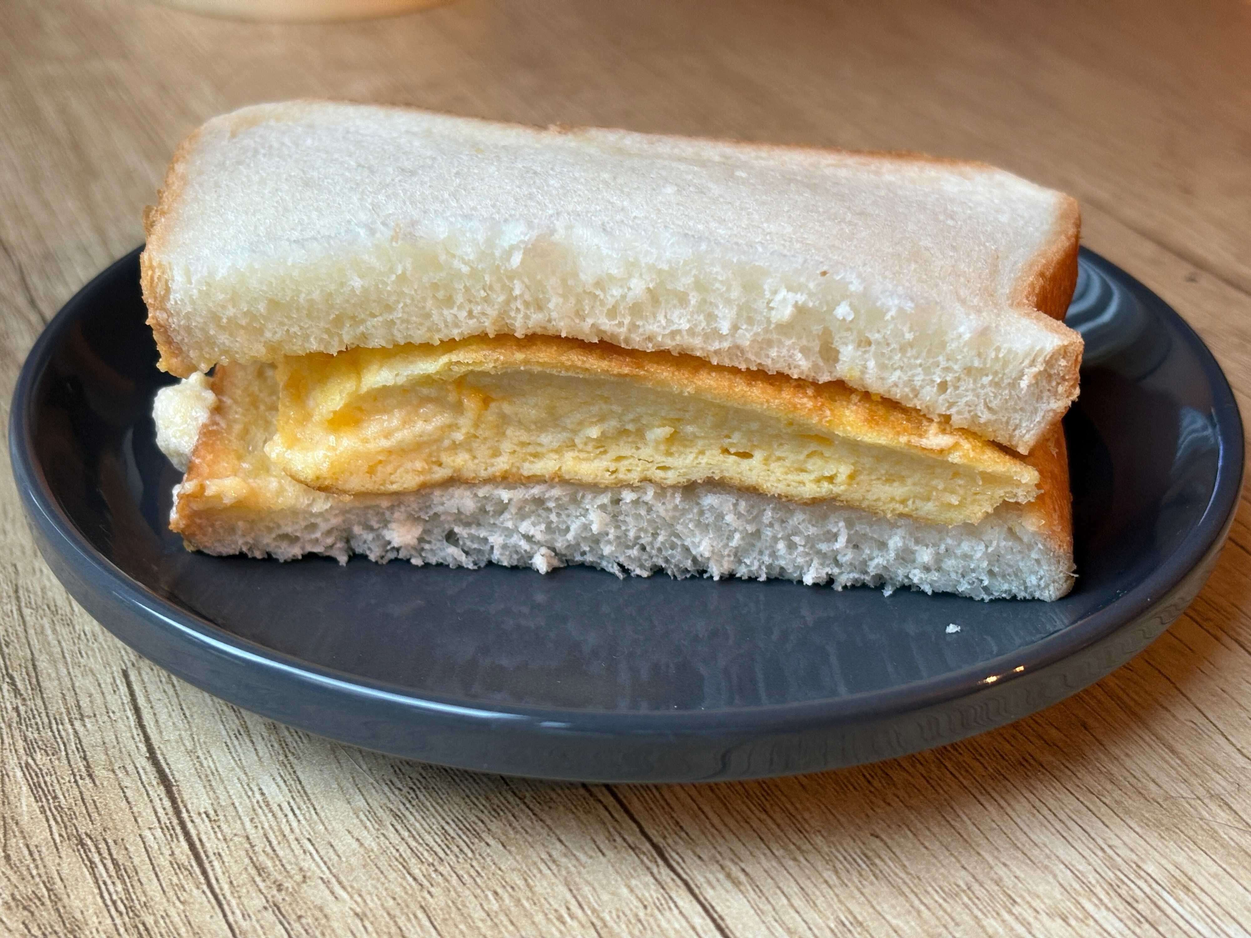 できあがったオムレツをパンに挟めば、ふわふわの卵サンドが作れます。