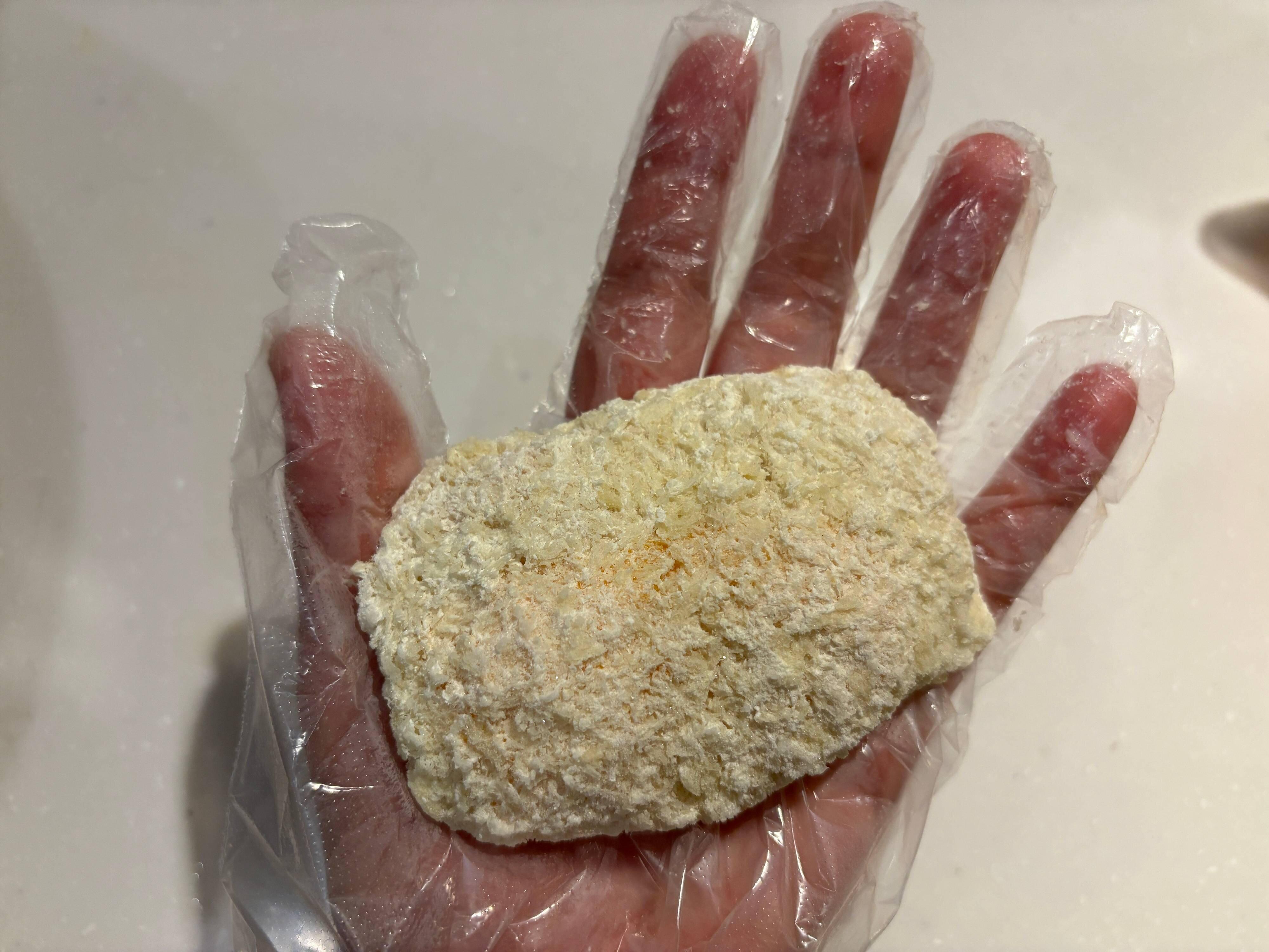 ほかの「鶏屋さんの」シリーズのチキンカツは不揃いなのに対し、チーズチキンカツはだいたい同じくらいの大きさのものが入っていました。