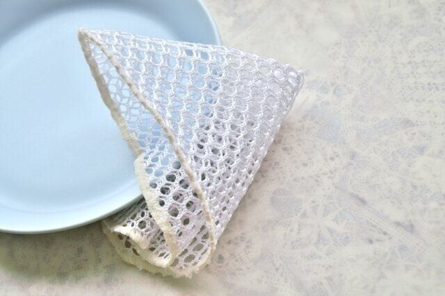 あみたわしは、ポリエステルやナイロン素材でできた、メッシュ構造の薄い布状のスポンジのこと。一般的なスポンジが面で汚れをこすって落とすのに対して、あみたわしは編み目の繊維が汚れをかきとりながら落とします。