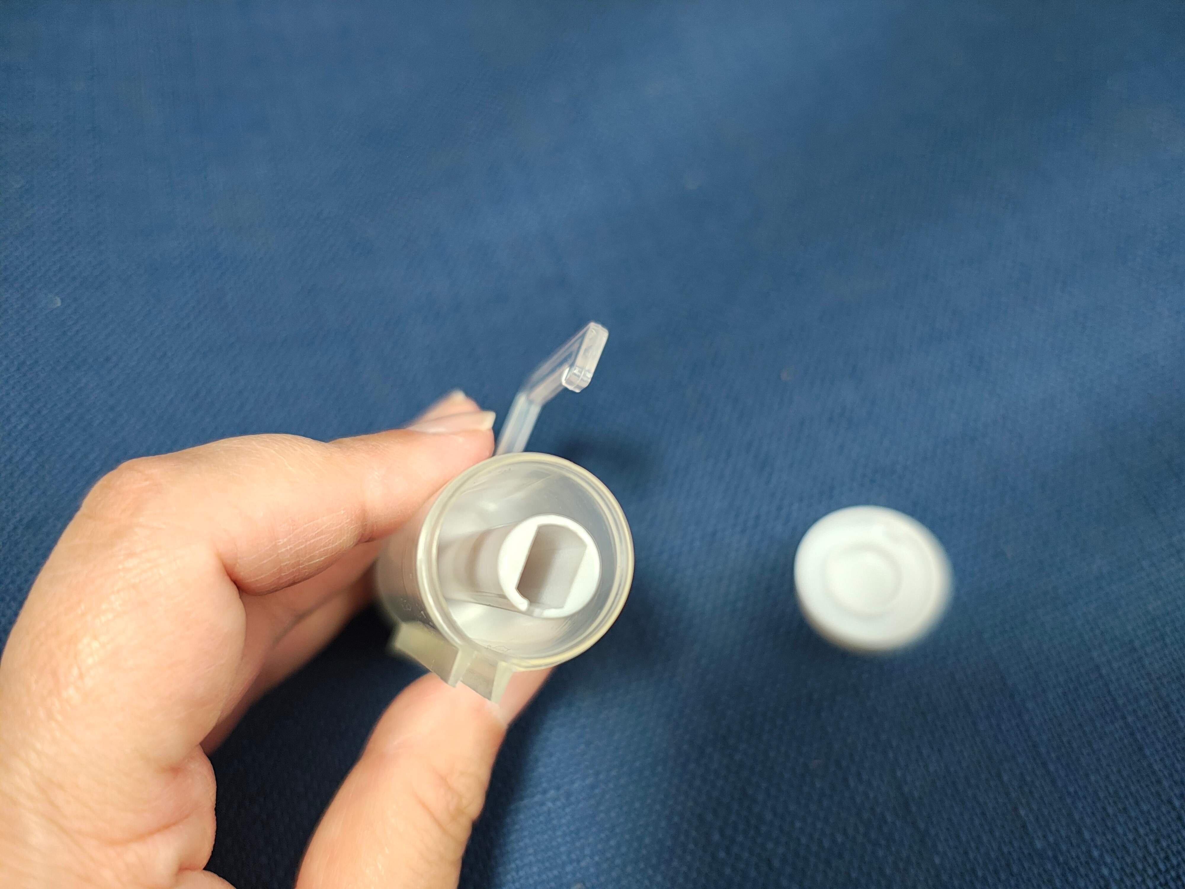 チューブを噛ませたら、キャップをしてハンドルを回します。キャップをするとき、キャップの凸部分を外側の溝に合わせないと閉まらないのでご注意ください。