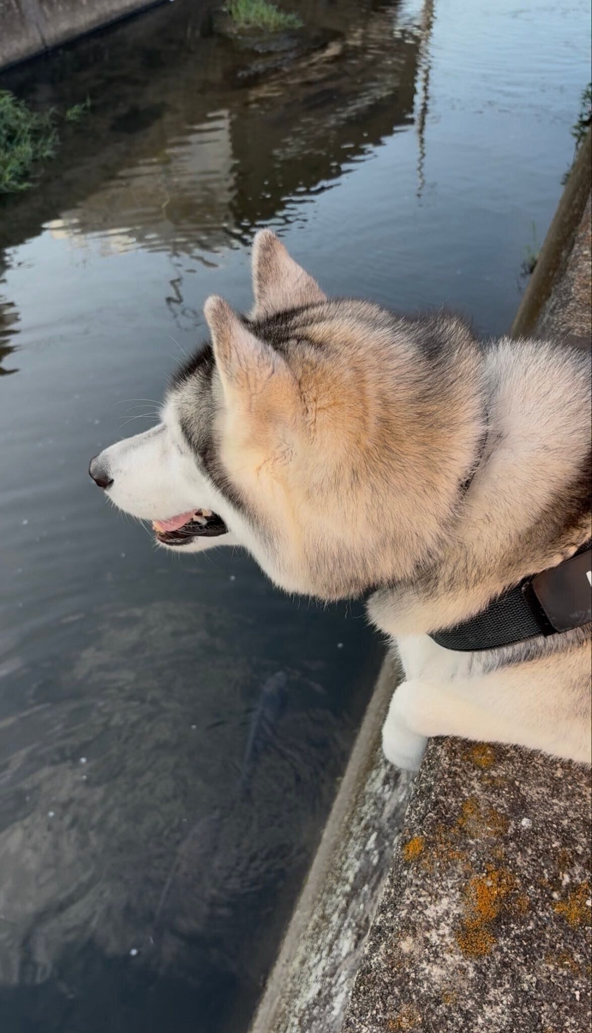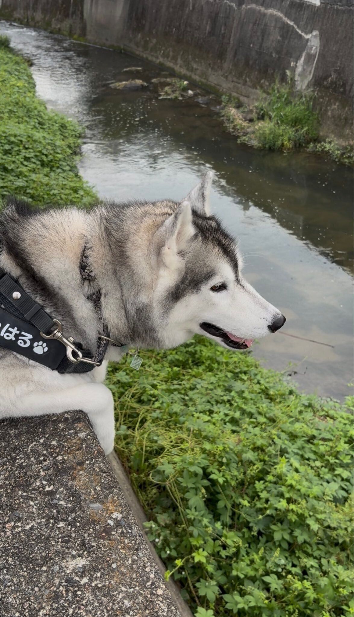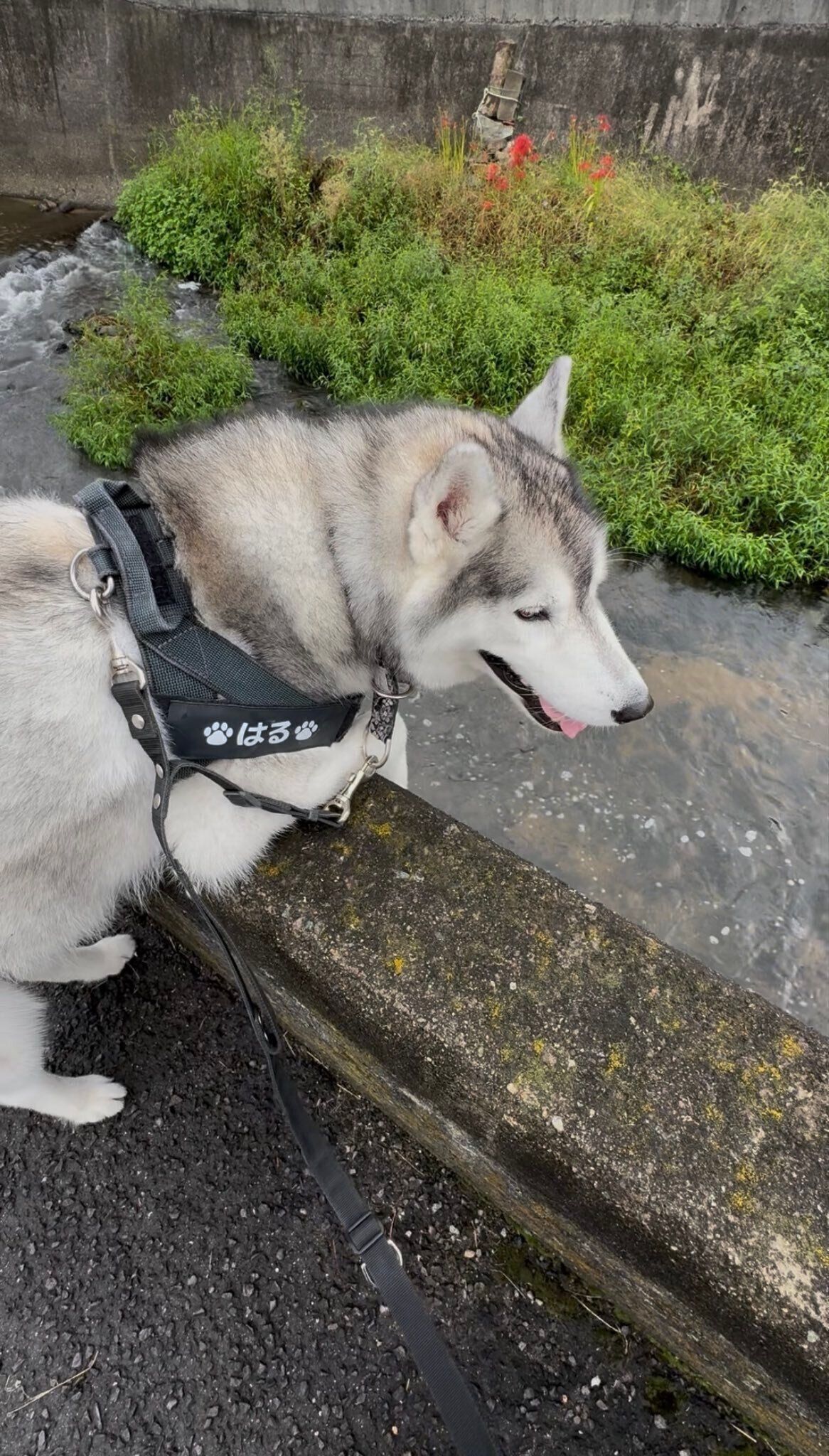 お散歩時は欠かさず川を見つめるほど、水が大好きなはるくん。