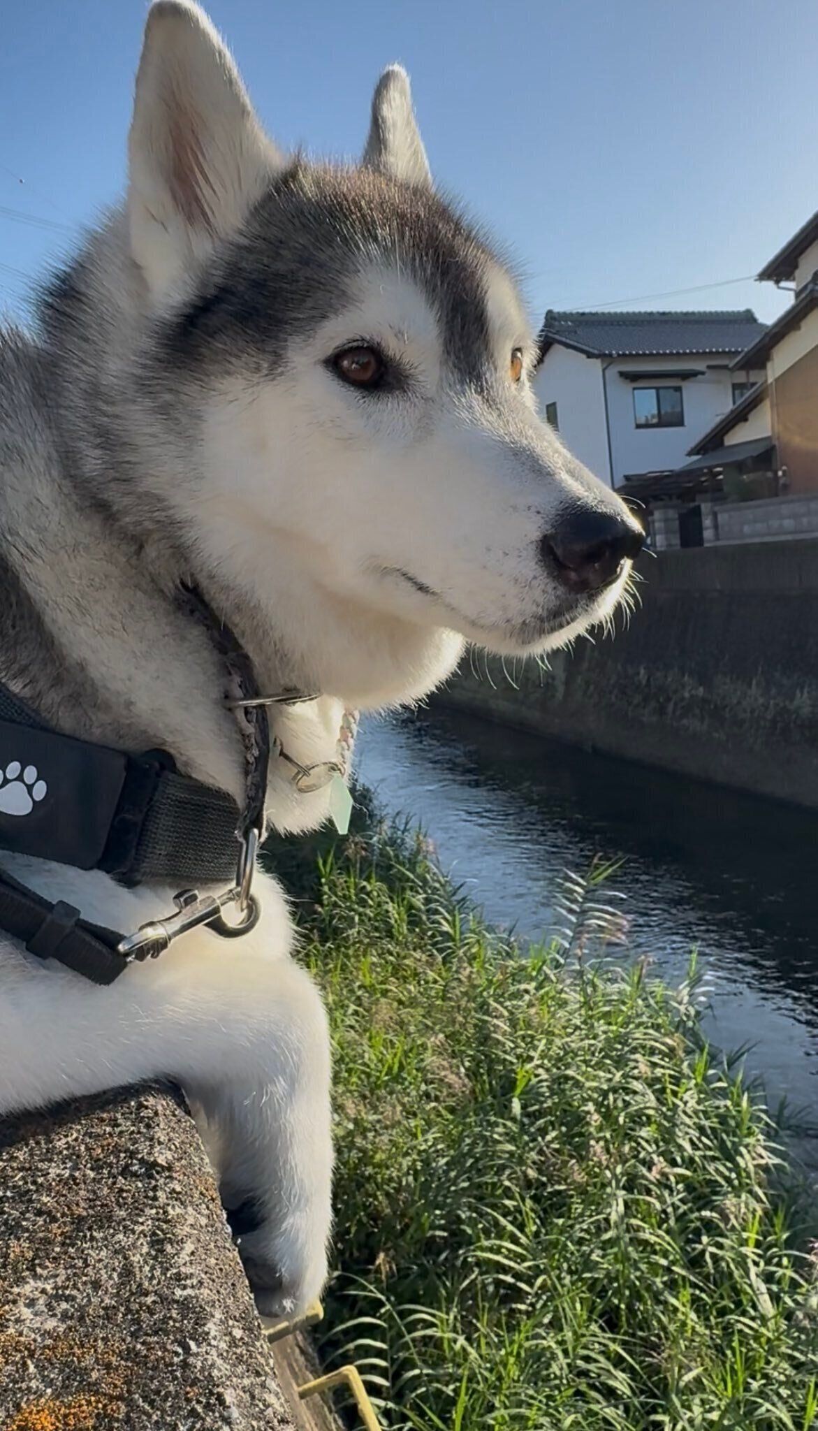 「凛々しい見た目で、怖そうに見られることもありますが、初対面の人にも甘えるかわいらしさがあります。あと、泳げないですが、毎日お散歩で川を見ています。その姿はご近所さんにも浸透していて、『はるくん、今日も川を見ているの?』と、よく声を掛けられます。特に何を見ている、とかはなく、ただ川の流れを見たり風を感じたりしているのかな?ある人には『感性の豊かな犬だね』なんて言われたこともありました。水は好きだけど、泳げないというギャップが愛おしいかな」