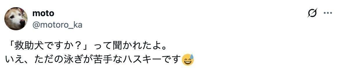 motoさん(@motoro_ka)が投稿した写真に、多くの注目が集まっています。投稿したのは、愛犬ハスキーのはるくんを海へ連れていったときの写真。泳ぐことが苦手なのに「救助犬ですか?」と間違われたはるくんに、7.6万いいねが集まりました!
