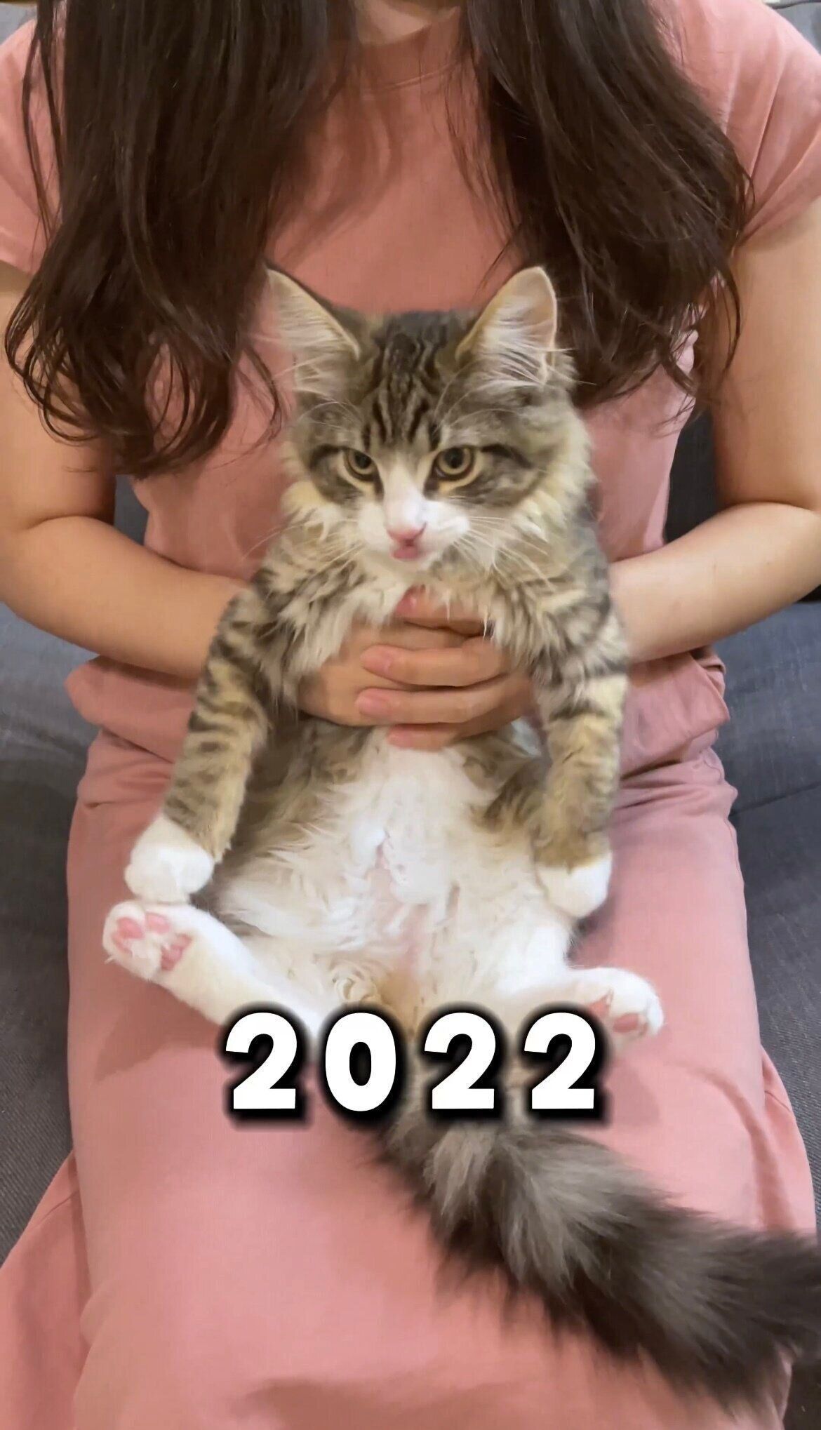 「北欧猫の0歳→3歳の成長を同じポーズで比較してみた」というコメントとともに投稿された動画がこちら。