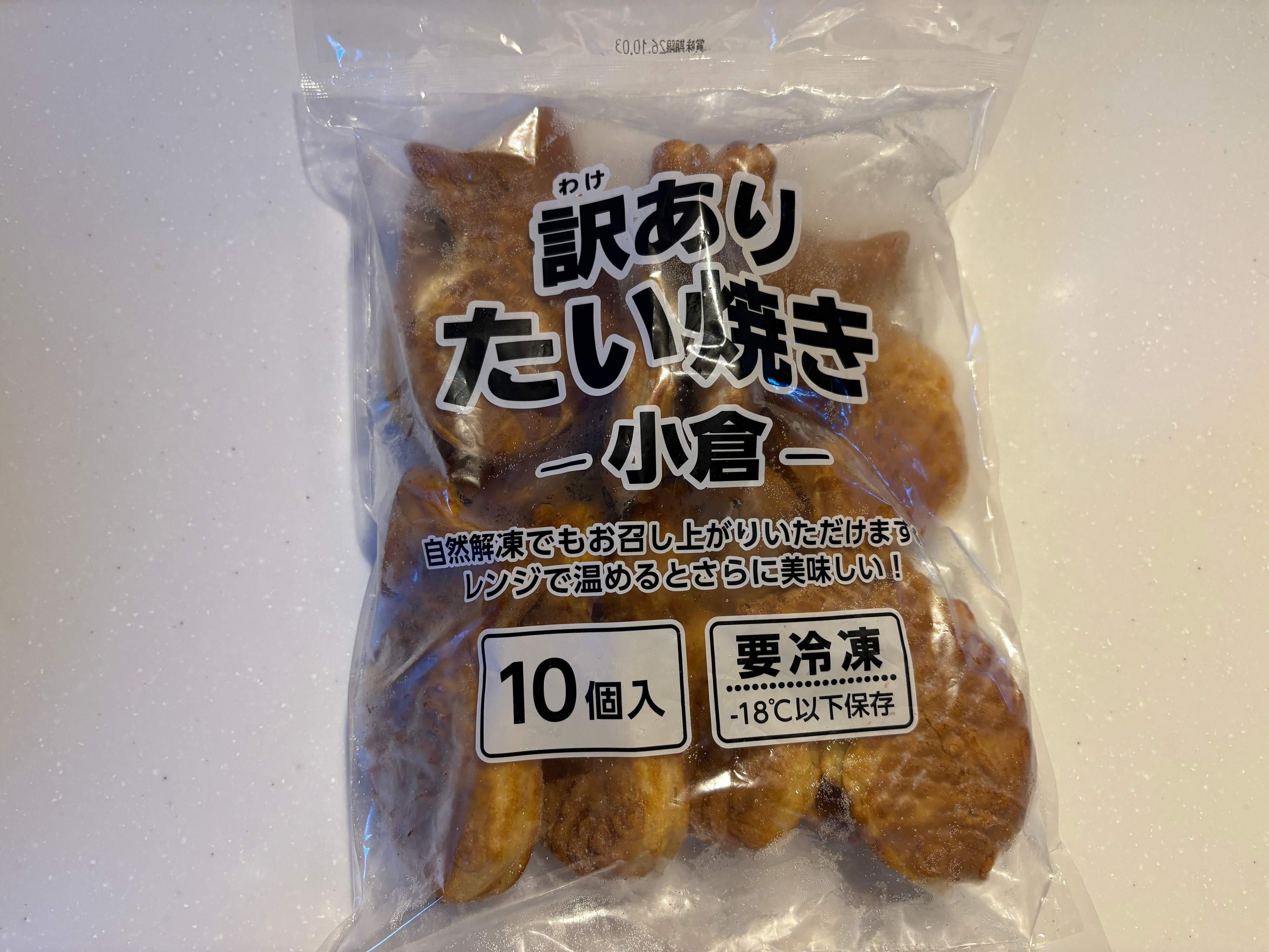 最後にご紹介するのは「訳ありたい焼き 小倉」(495円)です。形や大きさにムラがあるため「訳あり」として販売されているものの、味は問題なし。