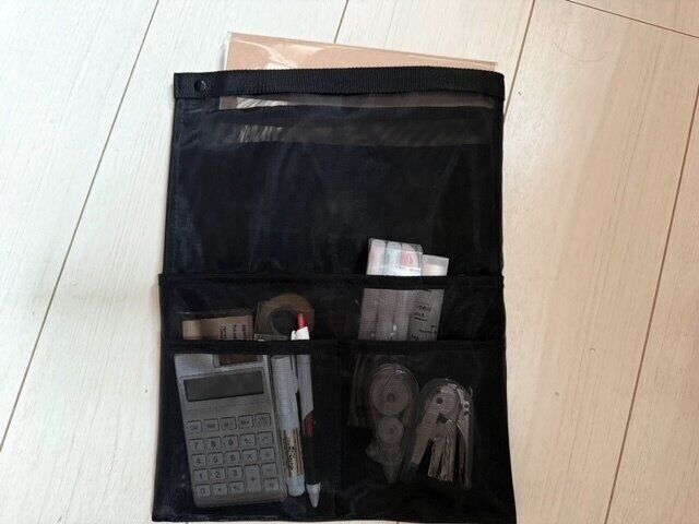 驚くほどスッキリ収納できて本当に驚きました。仕切りのサイズがそれぞれ違うのに、バラバラだった文房具が全部きれいに収まってしまうのです。まさに感動レベルの使いやすさでした。さらにうれしいことに、ノートまでスッポリ入る余裕あり。これひとつで、バッグの中が一気に整いました。