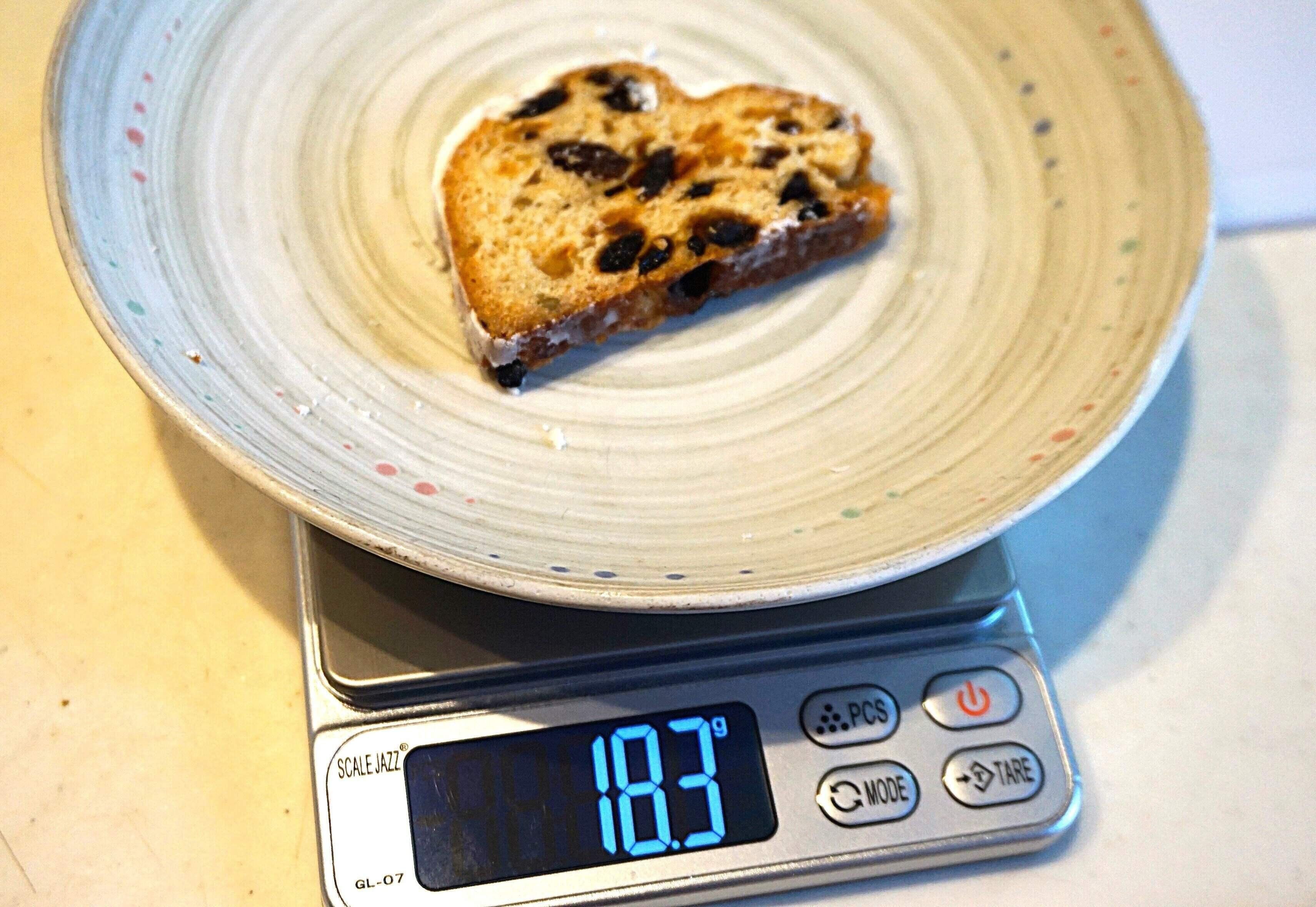 通常7mm〜1cmくらいにカットして食べるシュトーレン。生地がぎゅっと詰まっているためか、不器用な筆者でも簡単に包丁で薄くカットできました。
