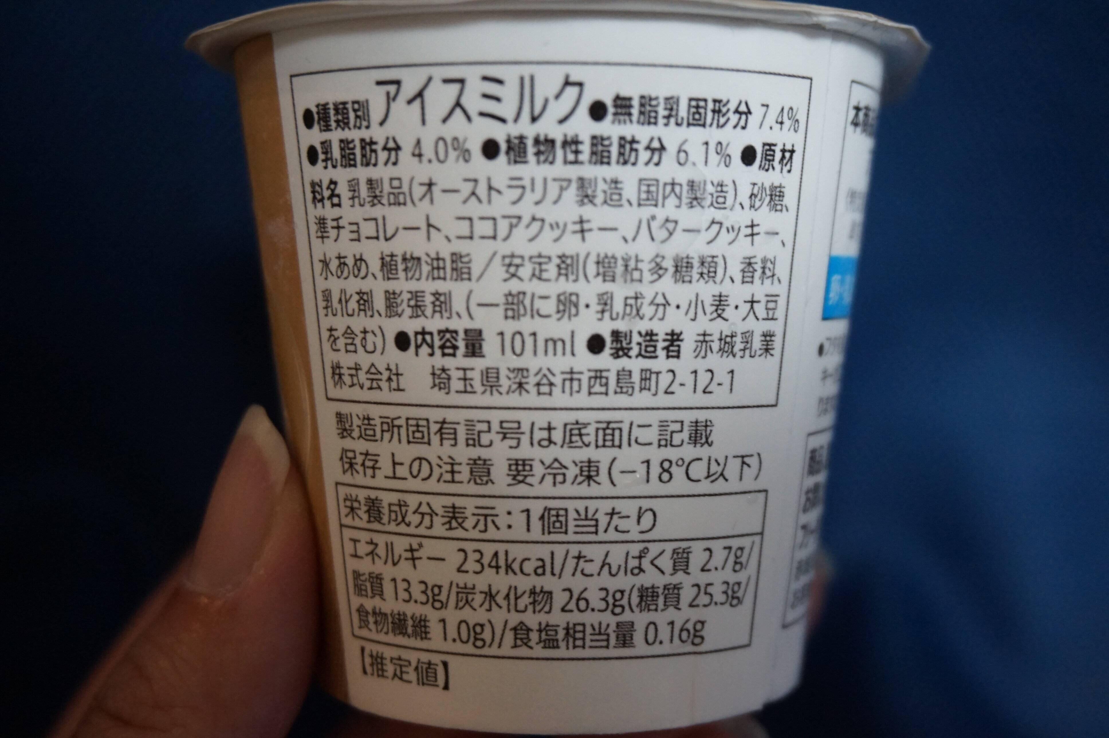一番下がミルクアイスで、その上にチョコレートがコーティングされています。コーティングのチョコレートがミルクアイスとココアクッキーが直接触れないようにしているので、ココアクッキーが湿気ることなく、食べる直前にもザクザクした食感を楽しめます。