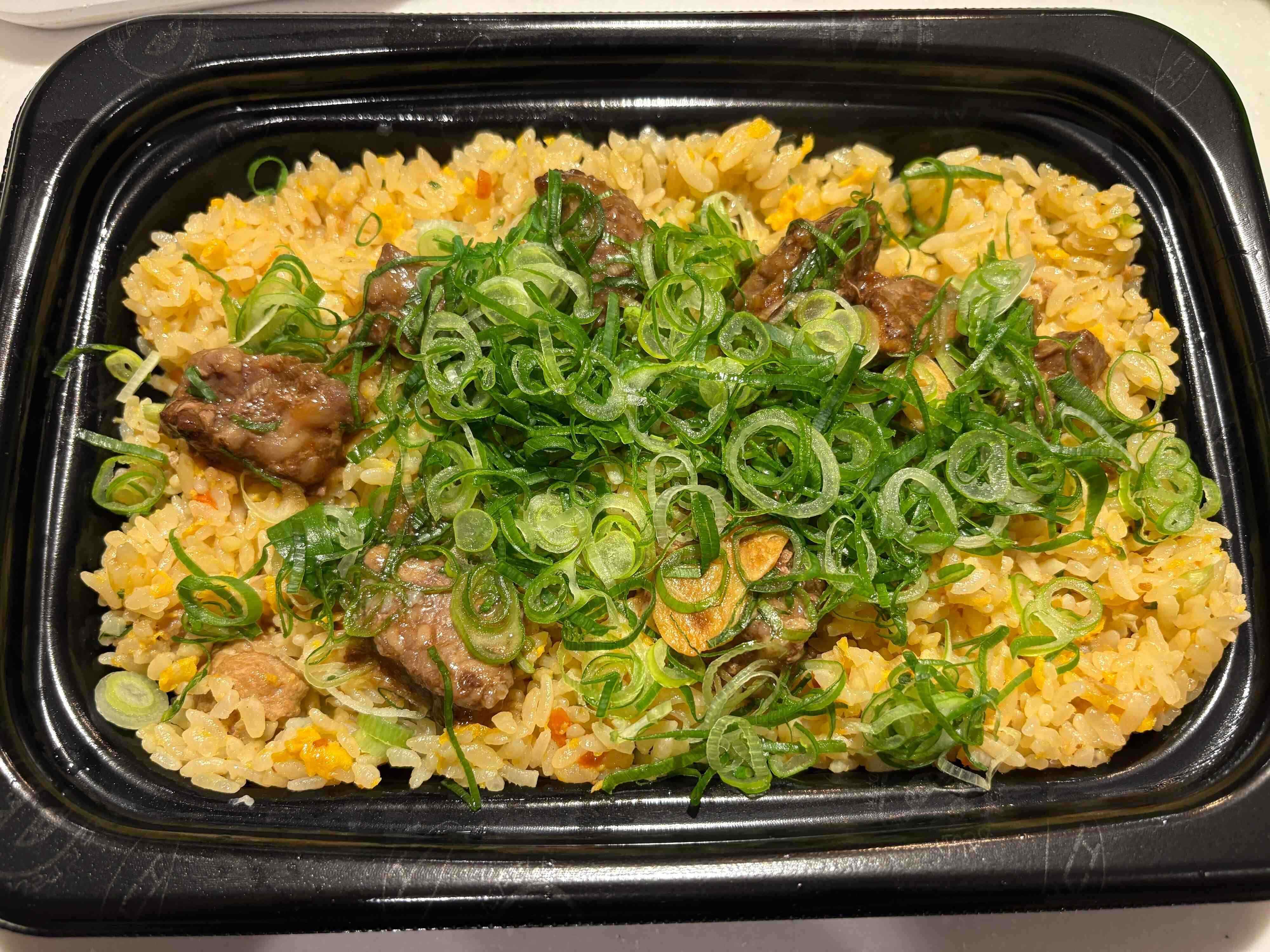 チャーハンの上に、牛カルビのカットステーキが乗った豪快で食べごたえのある一品です。牛カルビは、とても柔らかくてジューシー!チャーハンも王道ながら間違いのないおいしさで、子どもたちもおかわりが止まりません。重量350g超えのボリュームで、ガッツリ食べたい方もきっと満足できますよ。