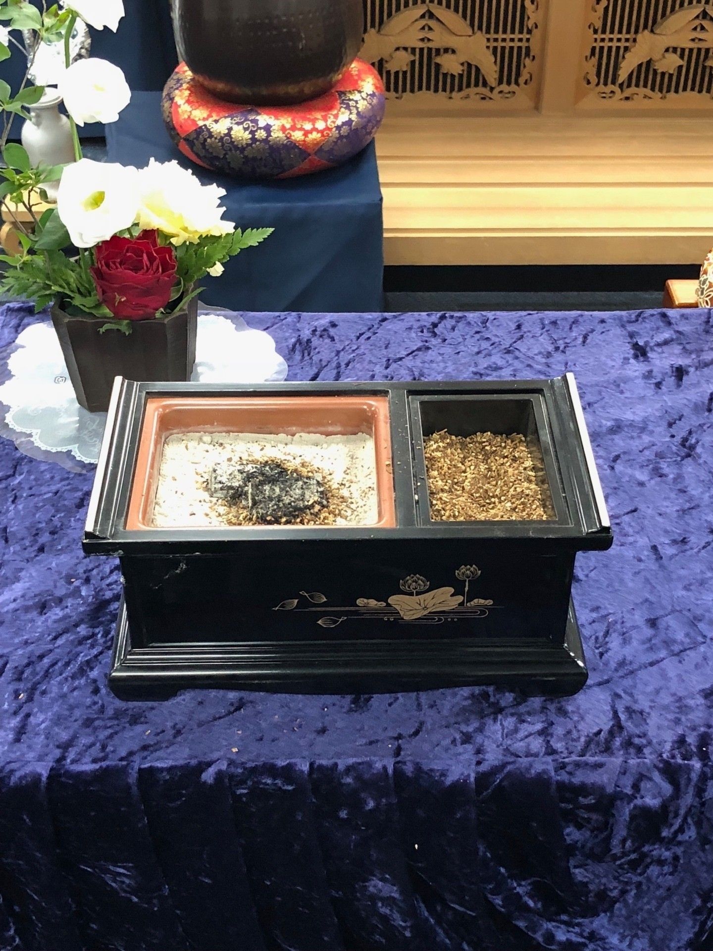 自宅の通夜や葬儀、法事などで行われます。読経中に香と香炉が1つになったものが盆にのって回ってきますが、基本的には立礼と同じです。