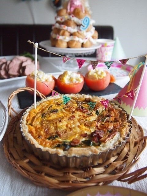キッシュにバースデーフラッグをさせば一気にバースデー仕様に。