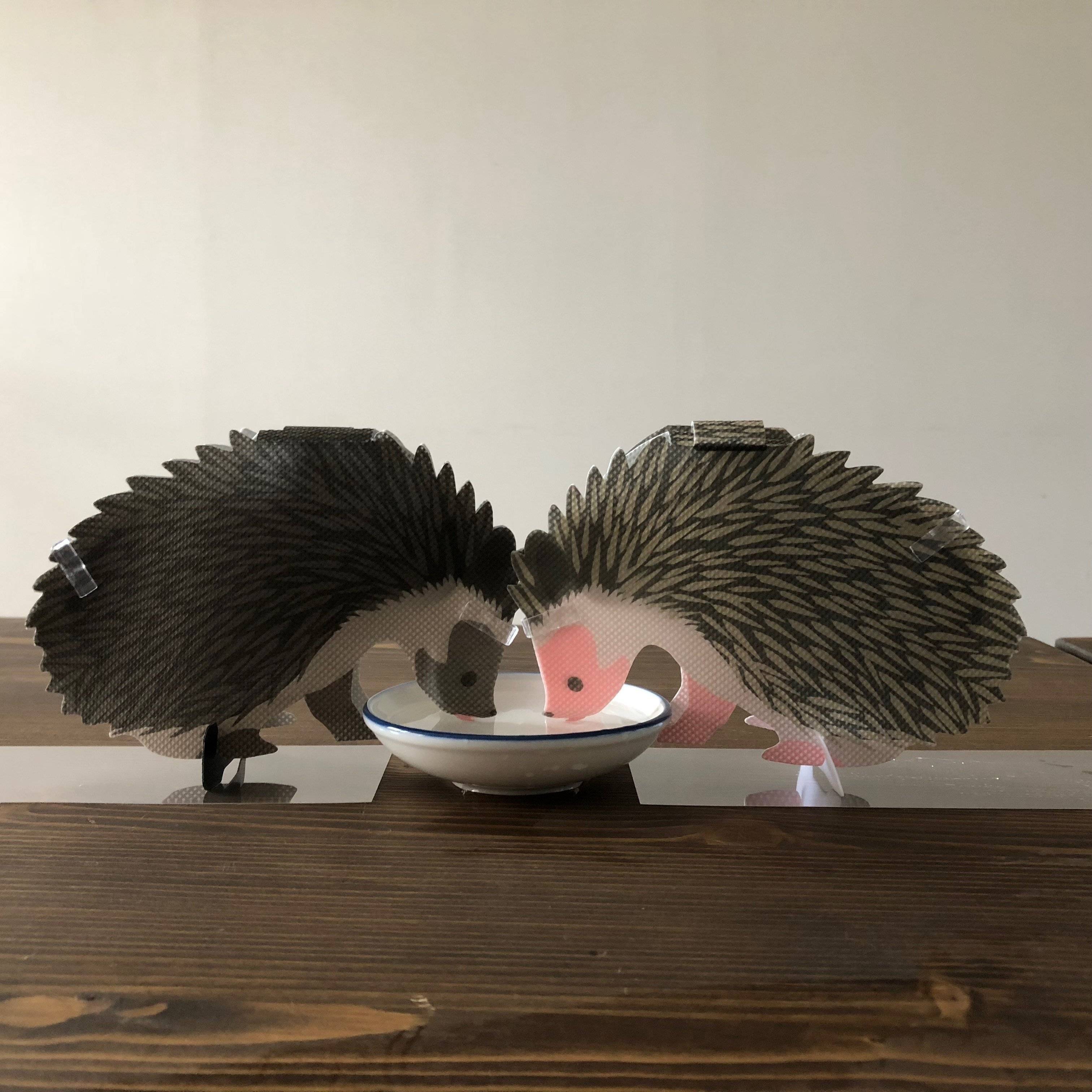 自然気化の30倍!不織布でできたハリネズミ2匹でうるおしてくれます。