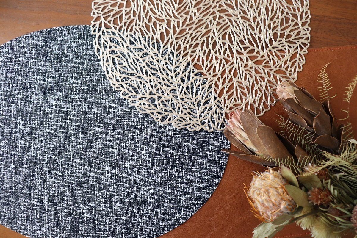 レザー調のランチョンマットは秋の雰囲気を出すのにぴったり!敷物1枚でお部屋の雰囲気を変えられますよ♪