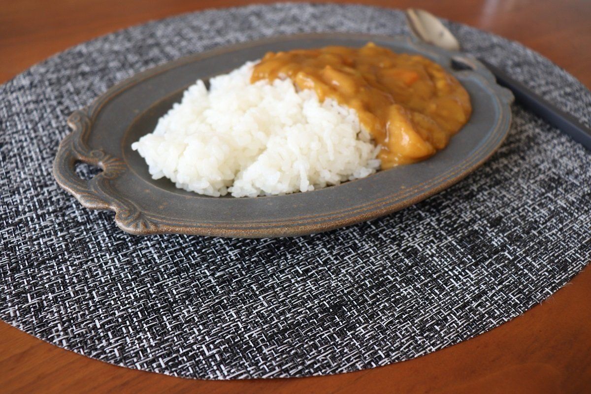 ニトリのランチョンマット「マルッグ」シリーズはベージュ、イエローグリーン、ホワイト、ブラック、ブルーの5色展開。写真はブラックのランチョンマットを使用しています。