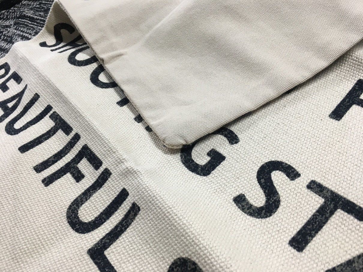 アルファベットのカバーはポップでかわいい感じ!ですが、生地感がしっかりめのキャンバス地でシックにもいけますね。シンプルやカジュアルインテリアにも馴染む感じです。こちらは洗濯機で洗えます。