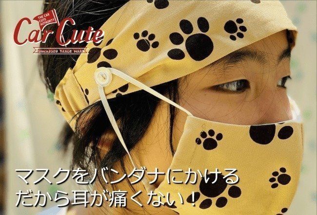 バンダナ部分にボタンがついているためゴムを耳にかける負担がないのが特徴。中面は綿100%の日本製サラシを採用。何度も繰り返し洗って使用できるそうです。