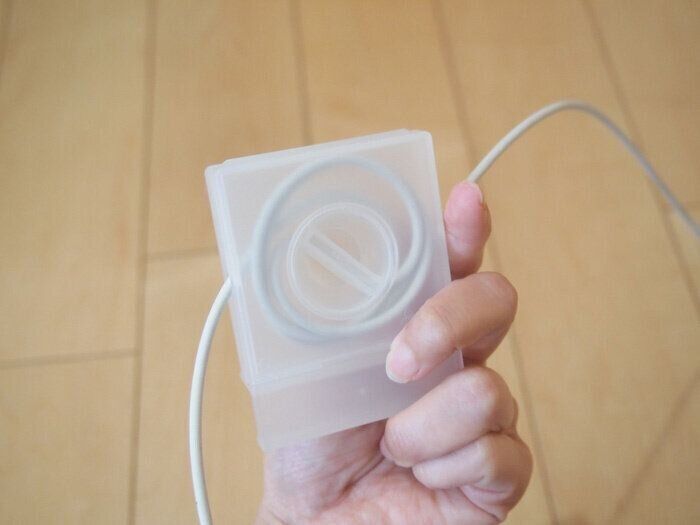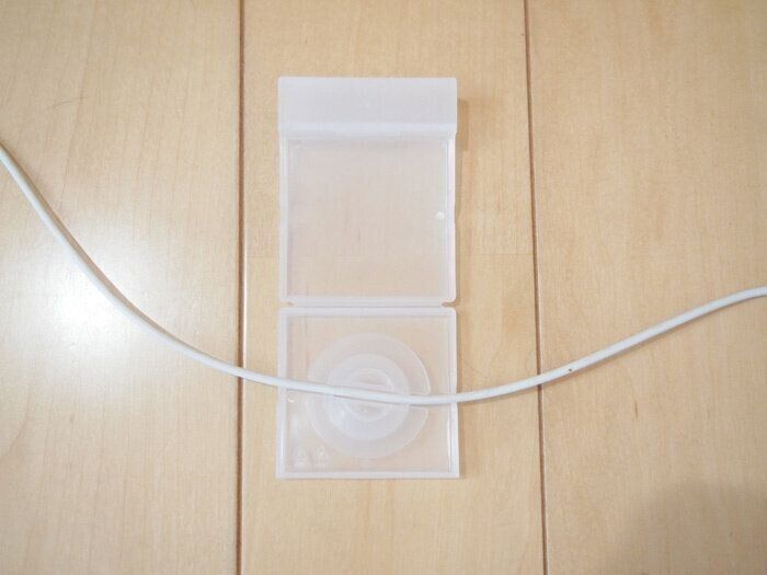 ケースをぱかっと開けまして、真ん中にケーブルが通るくぼみがありますので、そこにケーブルをはめ込みます。