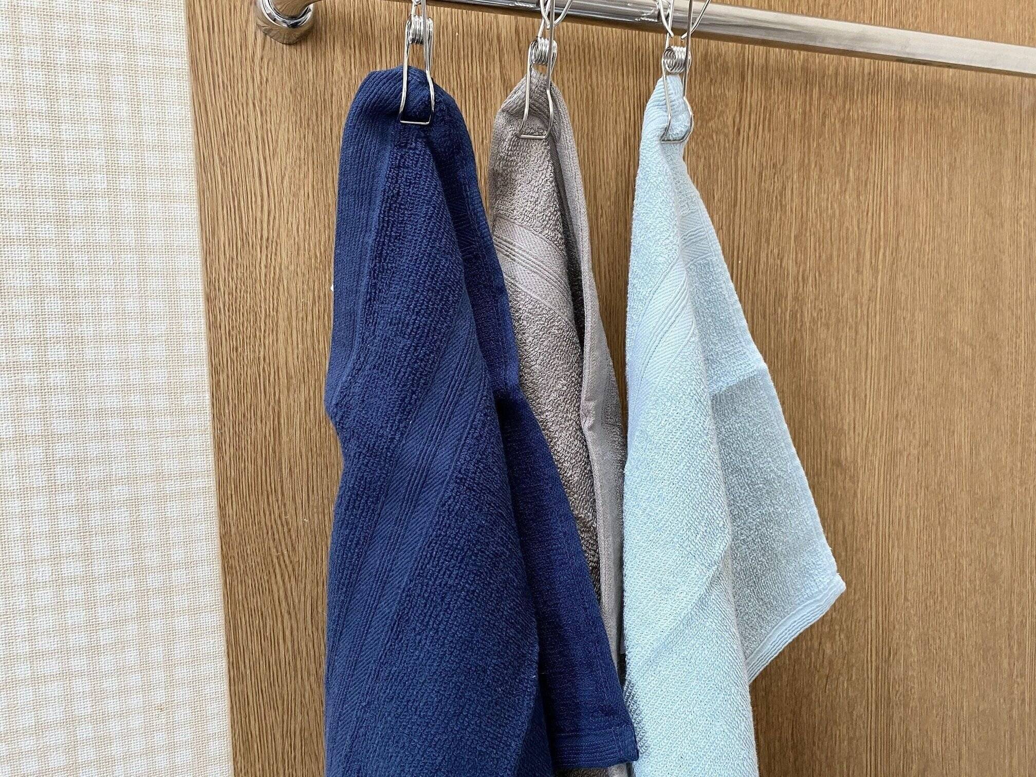 引っ掛けて使えるフックで家族ごとにタオル管理