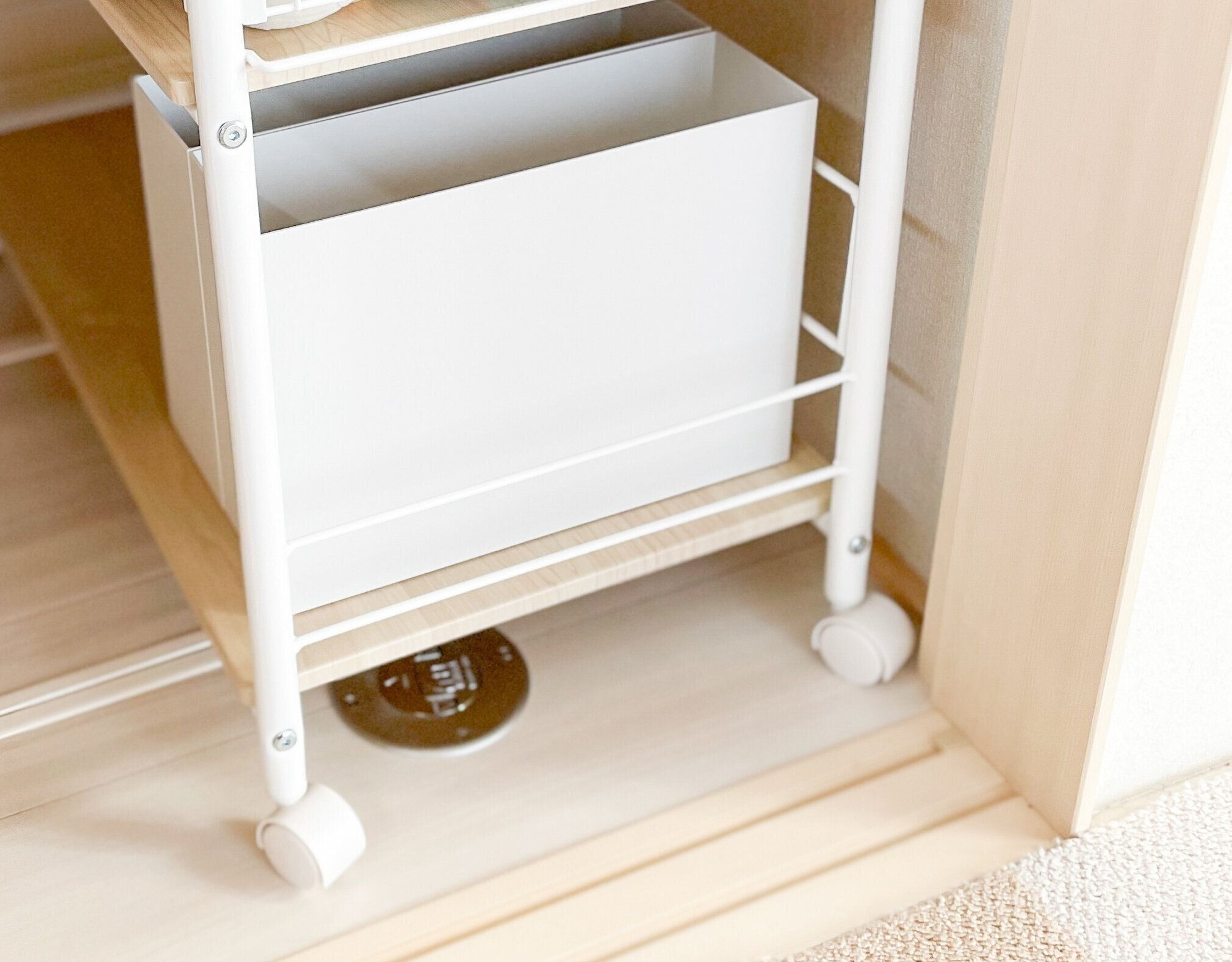 キャスター付きなので出し入れもスムーズです。3歳息子でも引っ張り出せます!押し入れや階段下など奥が深い収納に便利です。