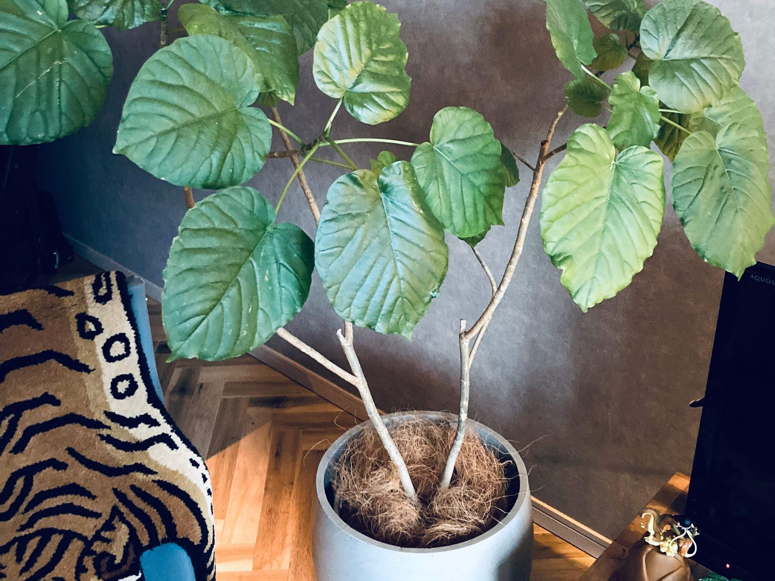 売られたままのプラ鉢では魅力は半減。室内に置くとチープ感は否めません。逆に言えば、変えるだけで高級感溢れるオブジェのような姿に早変わりします。