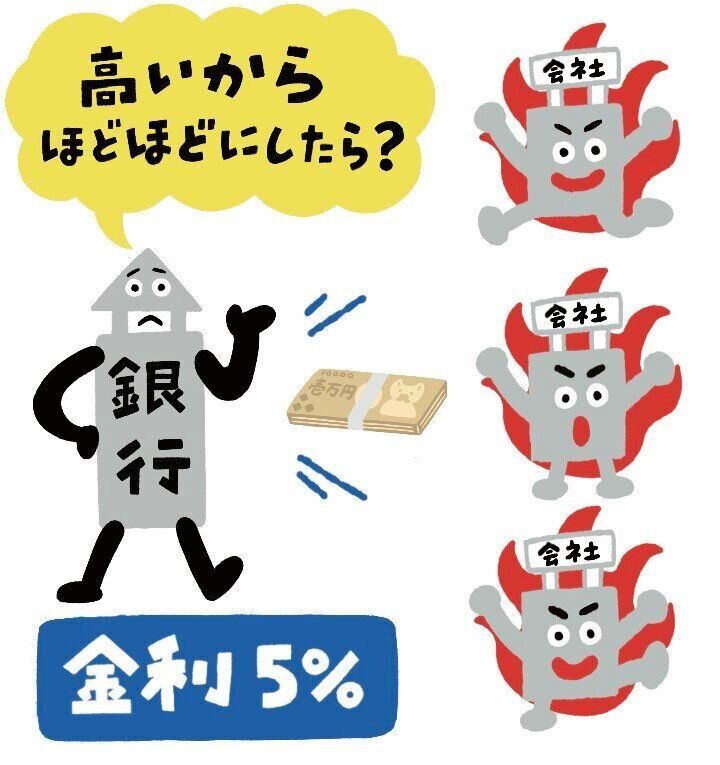 金利が低いというのはお金が借りやすくなるということで、企業にとっては人の採用や設備投資がしやすくなるということになります。いっぽう金利を上げれば上げるほどお金は借りにくくなるので、お金を借りて何かに投資するということがどんどん縮小されてしまいます。