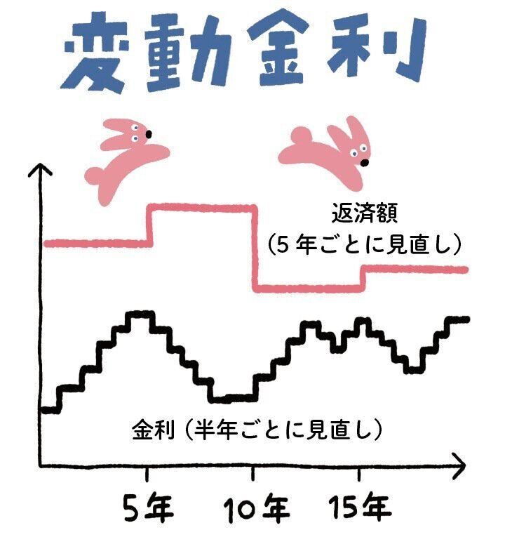 ひぇ~! モゲ澤さんのお話で言うと、お金の人気が下がりまくりということですね。でも、これから家を買いたいという人には朗報ですよねぇ。ところで「変動金利」とはどういう金利のことでしたっけ……?