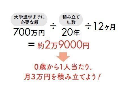 大学進学が近づいてからだと月10万円以上貯めないと間に合わない!だから子どもが生まれた月から貯め始めました。2人分で月6万円はきついけど教育ローンや奨学金を頼らずにすむようコツコツ頑張ってます。