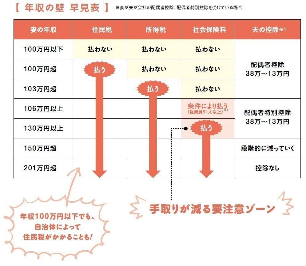 ●年収100万円超で住民税、年収103万円超で所得税がかかります