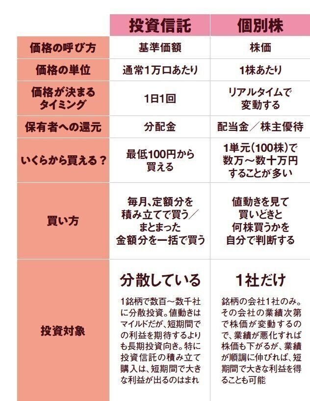いつ、いくらで、どのくらい買うかを自分で判断したい人は個別株向き!