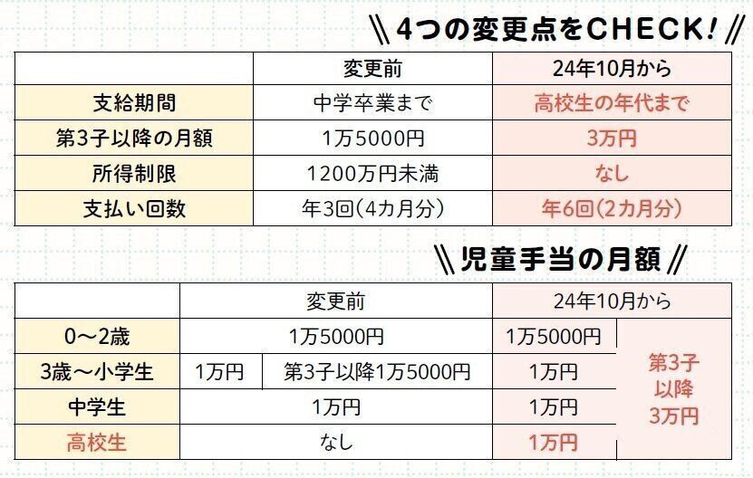 - 所得制限がなくなり、支給期間が高校卒業までに延長される!