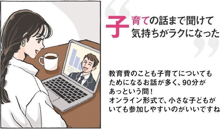子育てママが知っておくべきお金のことを、お金のプロ中のプロがとってもわかりやすく解説してくれる。セミナー中はチャットで質問もできるから、もやもやした疑問も解消。もちろん、初心者ママ大歓迎です!