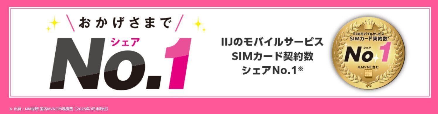 筆者は今回初めて知ったのですが、シンプルな料金プランと柔軟なオプションの評価が高く、IIJmioはMVNO市場シェアNo.1※です。